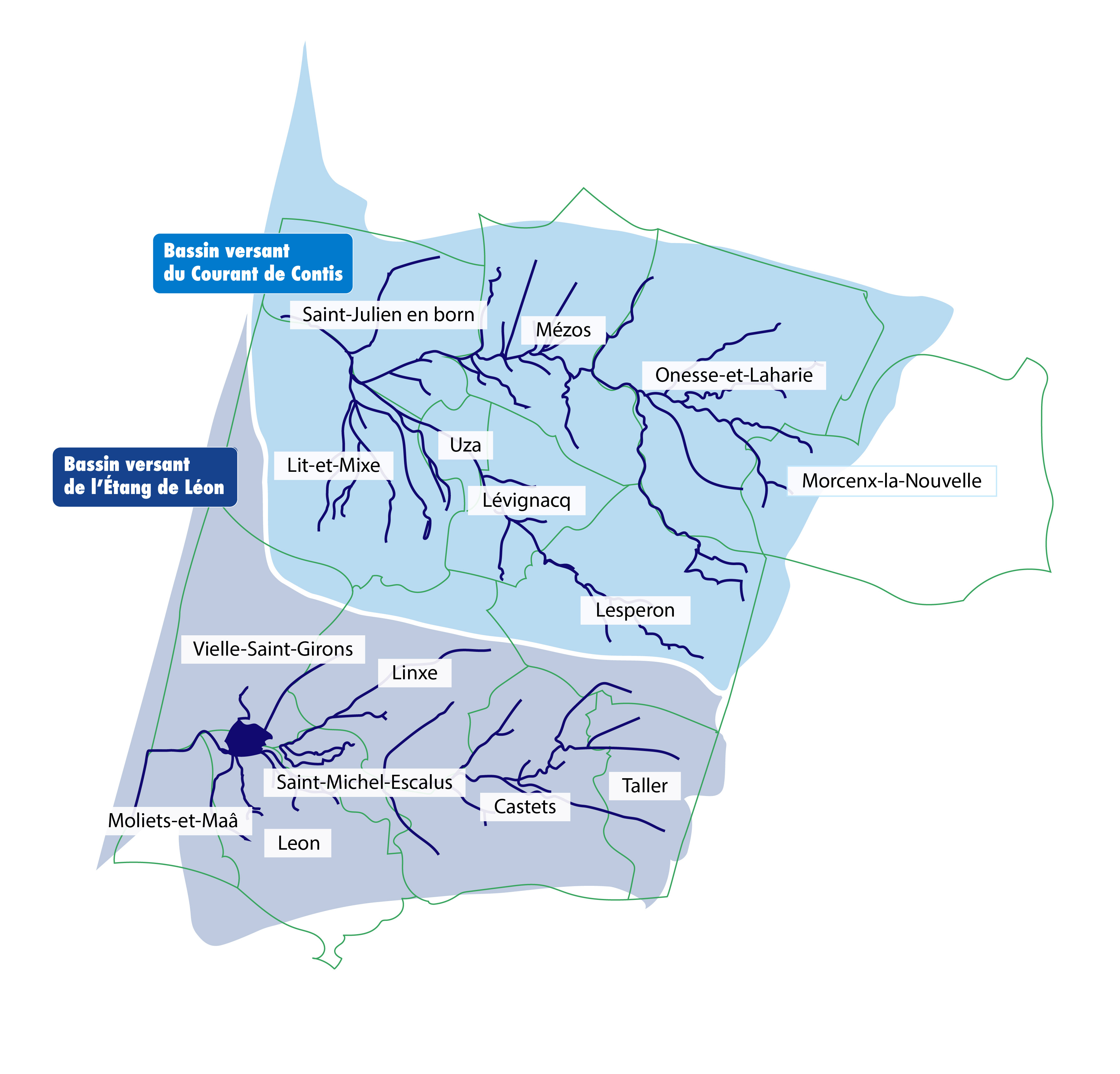 Les bassins versants des courants d'Huchet et de Contis