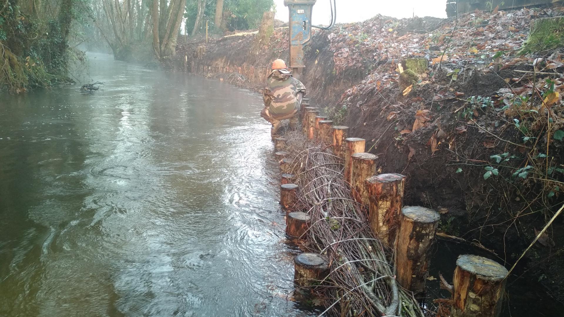 Mise en œuvre de déflecteur en fascines de saule
